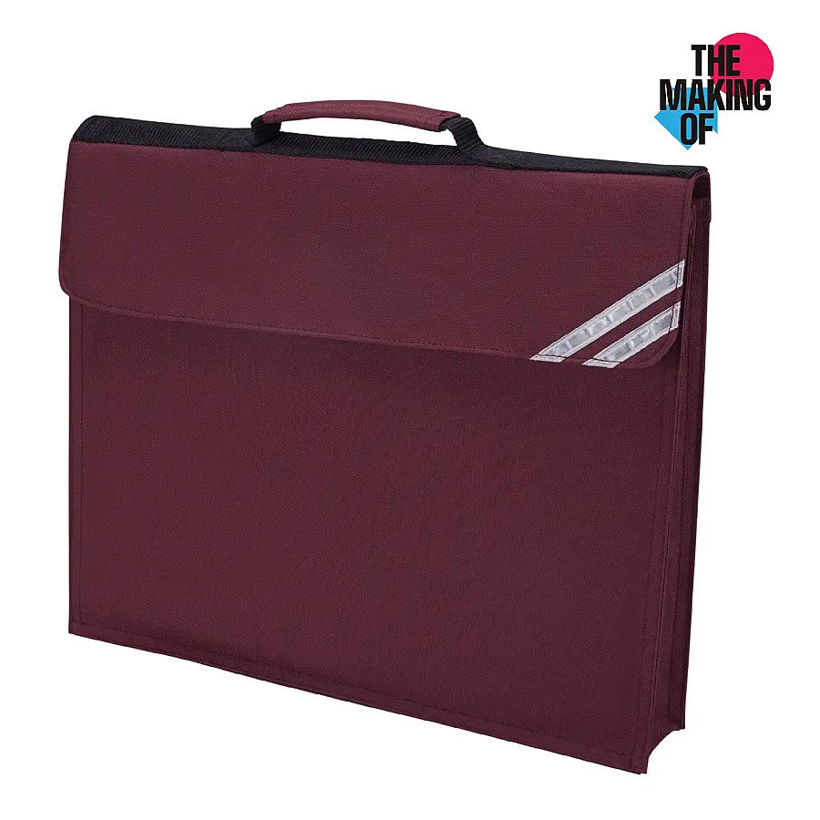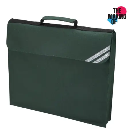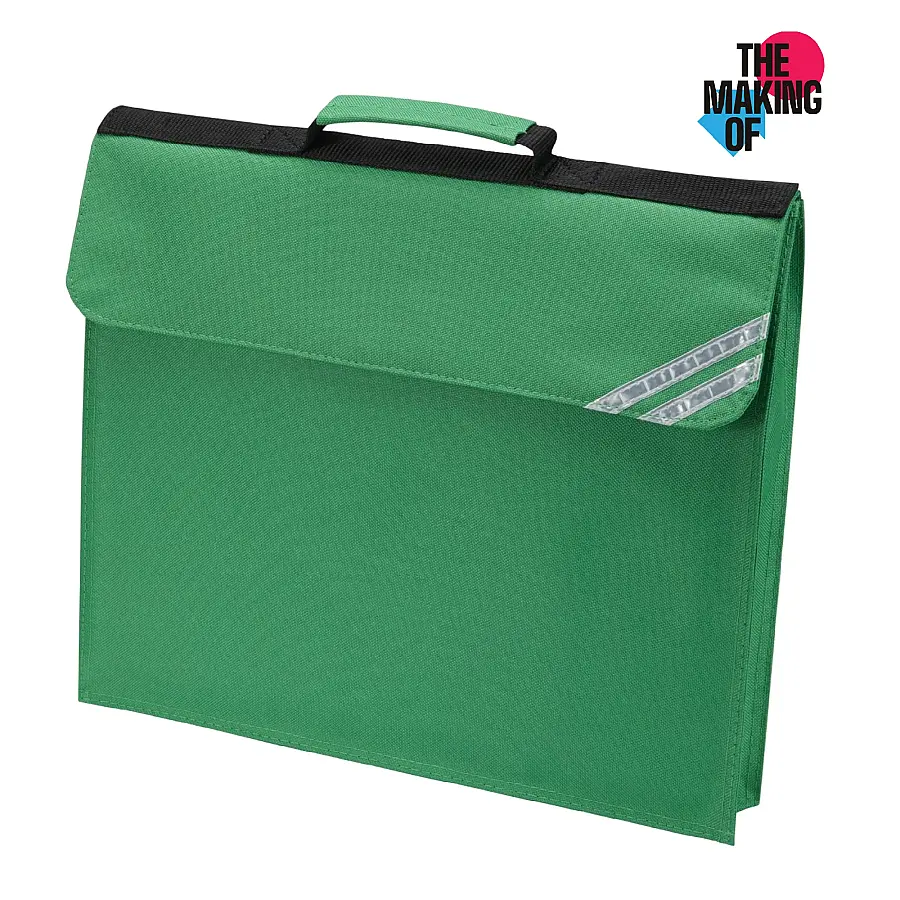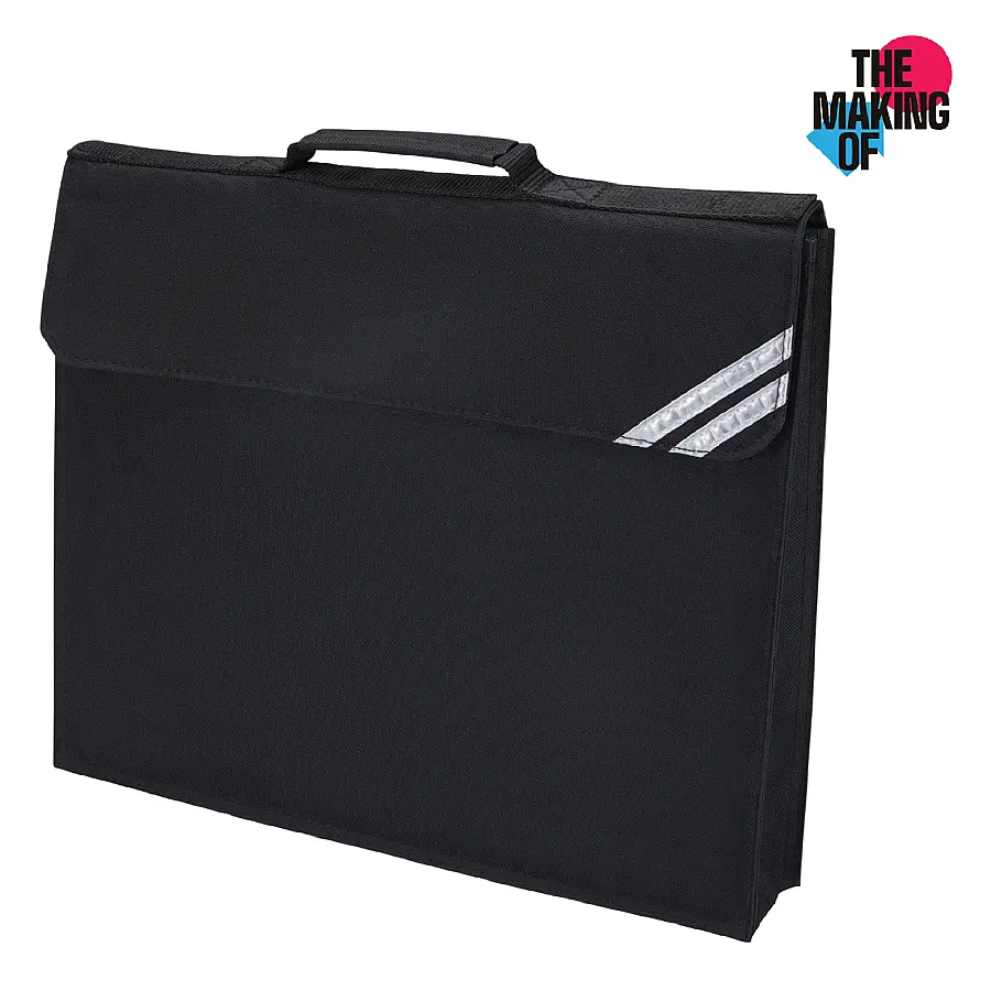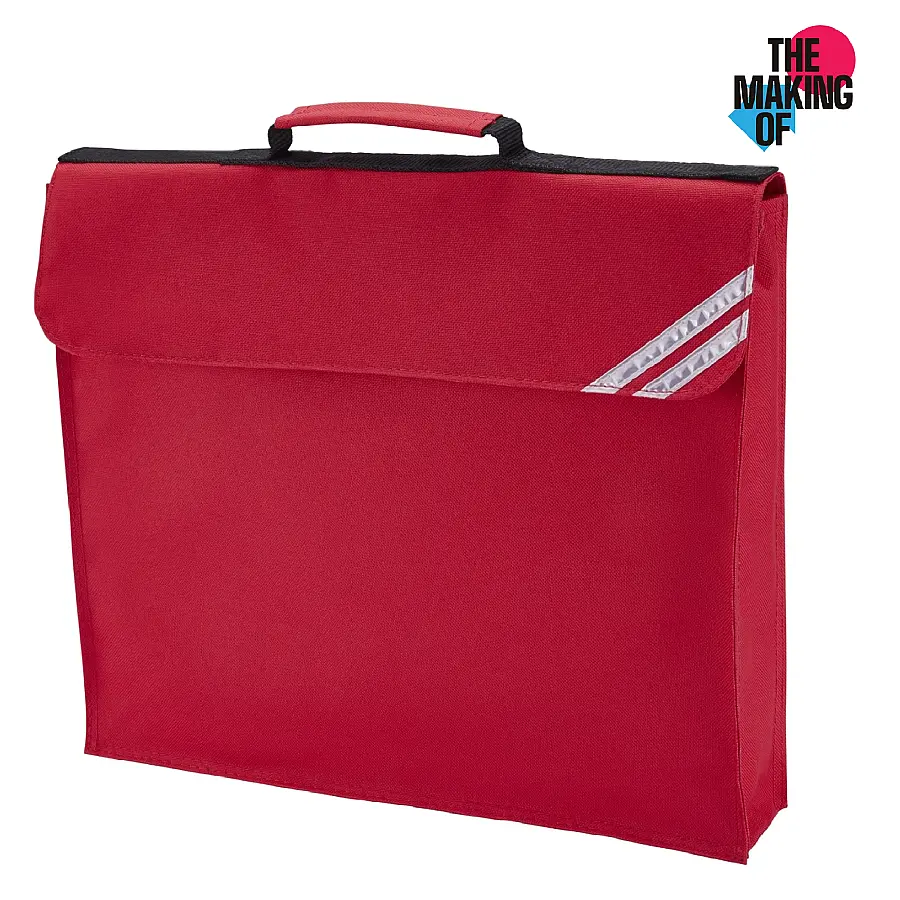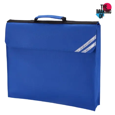 An expanding book bag with two silver reflective corner strips, a clear plastic name card pocket and a name card, available in a range of popular colours. 30cm x 36cm.